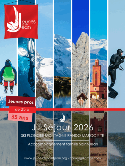 JJ séjour 2026 – Programme Complet ! Publié le 16 novembre 20253 janvier 2026 Date du séjour Année 2026 Age requis de 25 à 38 ans Catégorie 2026 Tu es un jeune professionnel catho et tu cherches un séjour sport & spi ? Tu es au bon endroit !! Tu trouveras ci-dessous le programme des séjours JJ 2026 ! Attention, il n’y a pas le séjour réveillon A très vite Anne, Agathe, Bertrand, Joseph, Laetitia, Matthieu, Madeleine, Maroussia