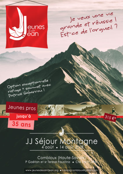 Ce séjour Montagne, qui réunit habituellement entre 30 et 40 jeunes pros, est le plus ancien et le plus demandé de nos séjours depuis 15 ans. Il offre un ressourcement spirituel et humain de grande qualité. Messes, louanges, adorations et topos sont proposés chaque jour. Patrick Gabarrou, viendra nous présenter sa passion de la haute montagne lors d’une soirée.