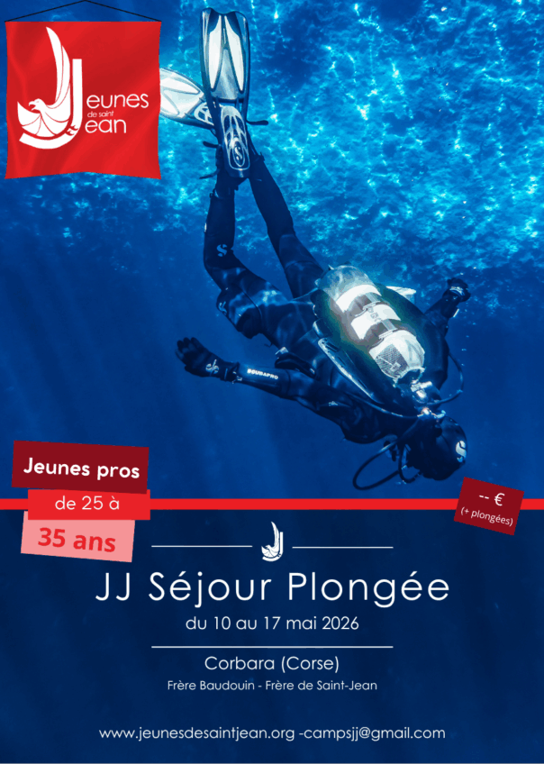 Programme : Lever – Laudes – Petit déj’ – Plongée – Pique-nique – Balade éventuelle – Messe tous les jours – Topo – Apéro – Diner – Prière – Veillée (discussions et jeux de société).